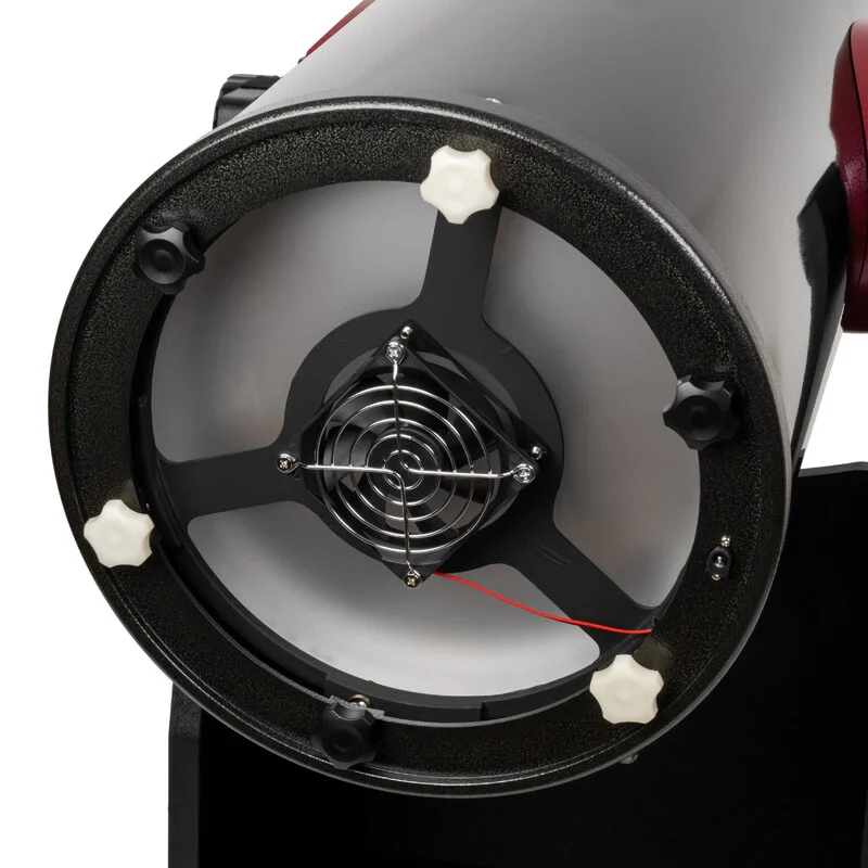 Solo un leve zumbido inapreciable, pero con un efecto gigantesco: el ventilador integrado de 12 V permite refrescar el espejo principal hasta un 50 % más rápido, gracias a lo que su telescopio podrá alcanzar la calidad de imagen óptima mucho antes. ¡Se acabaron las largas esperas!